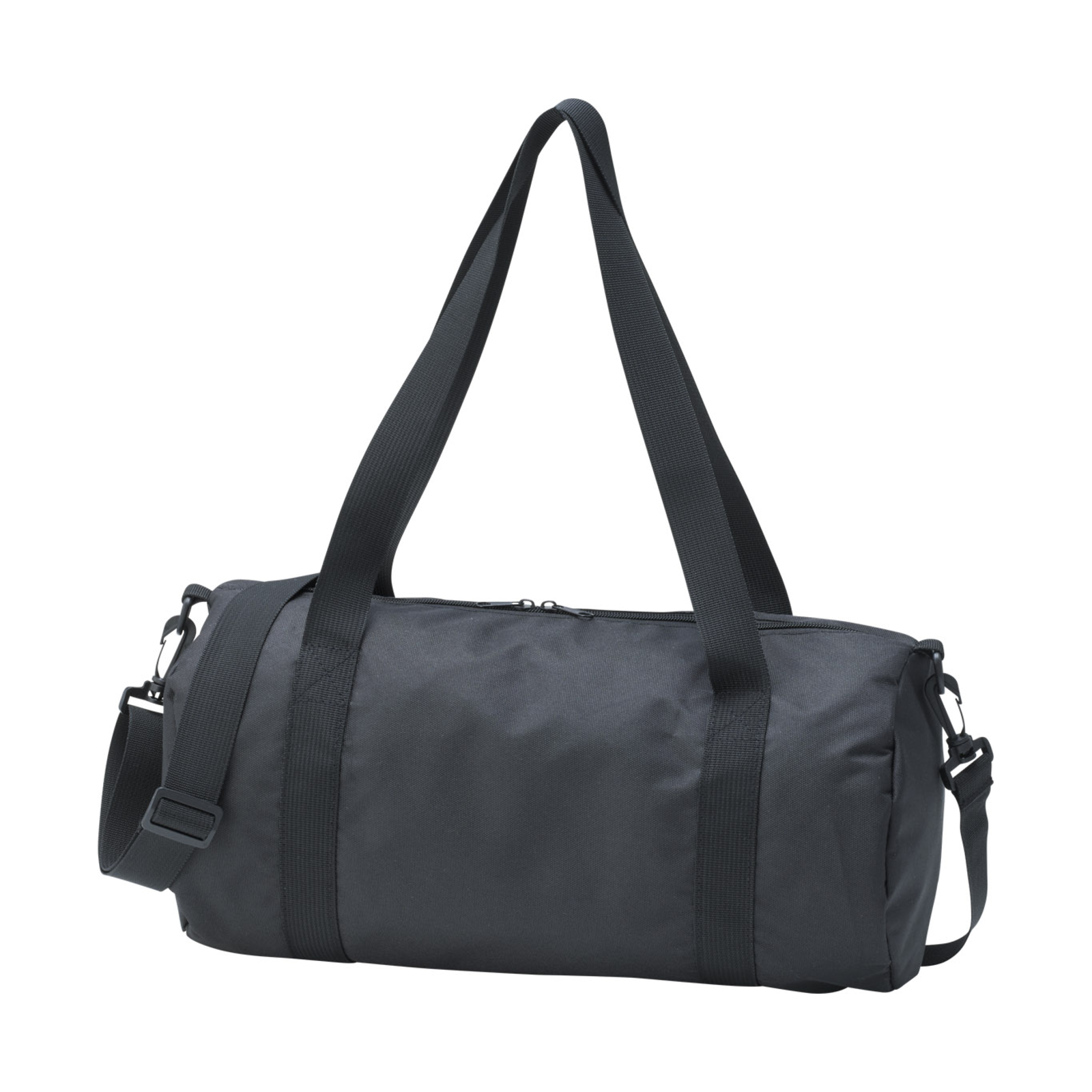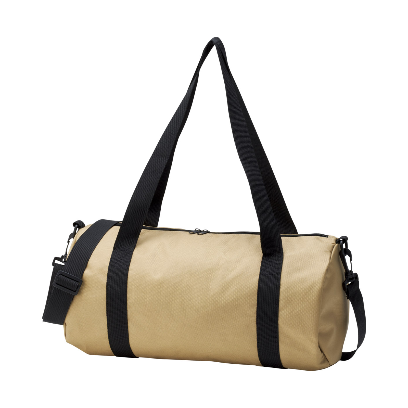 再生ポリエステルを使用したドラムバッグ。手持ちでも肩掛けでも扱いやすい2WAY仕様。